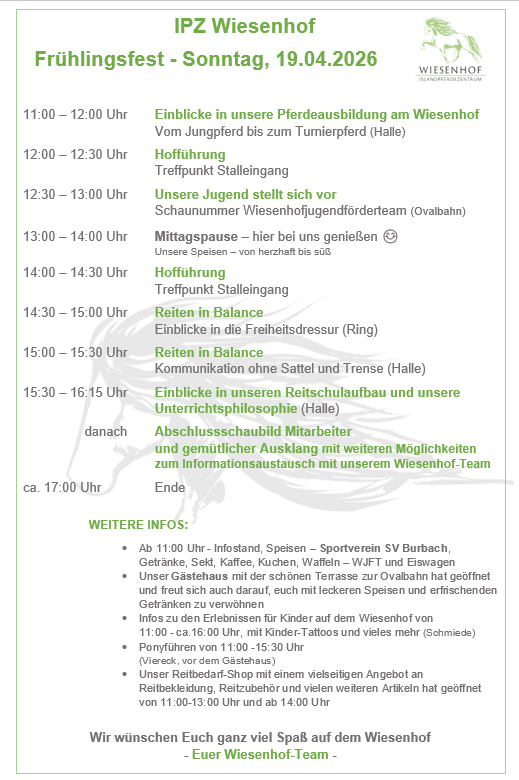 Individuelle Förderung von Mensch und Tier sowie Offenheit für alternative Meinungen und Methoden machen den Wiesenhof seit über 40 Jahren zu einem Treffpunkt für Pferdefreunde jeden Alters.